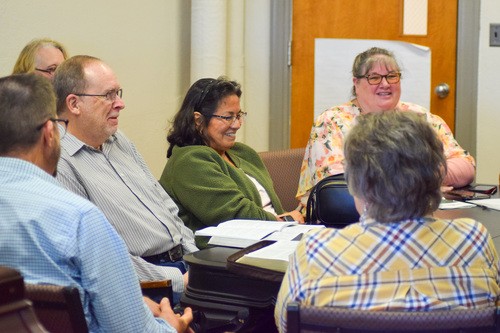 The class rotates its facilitators and studies scripture. The class examines various materials, watches videos, and has small group discussions